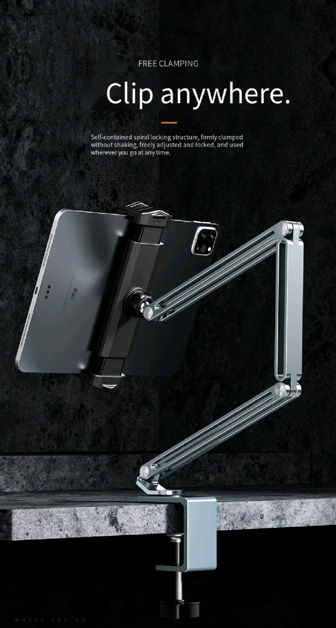 1.Product Name: iDock Aluminum Long Arm Desktop Mount Holder for Bed Overhead Flexible Arm Clamp Clip Lazy Tablet Mobile Phone Stand Holder For Desk