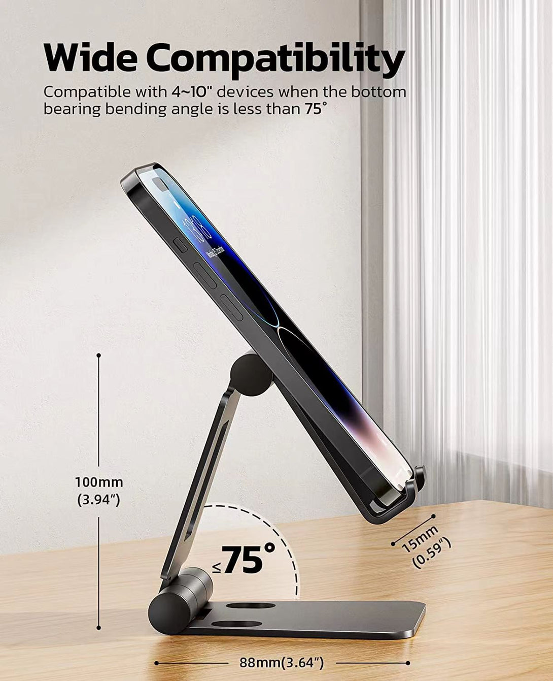 Soporte ergonómico plegable para teléfono celular Soporte para teléfono de escritorio totalmente ajustable y plegable