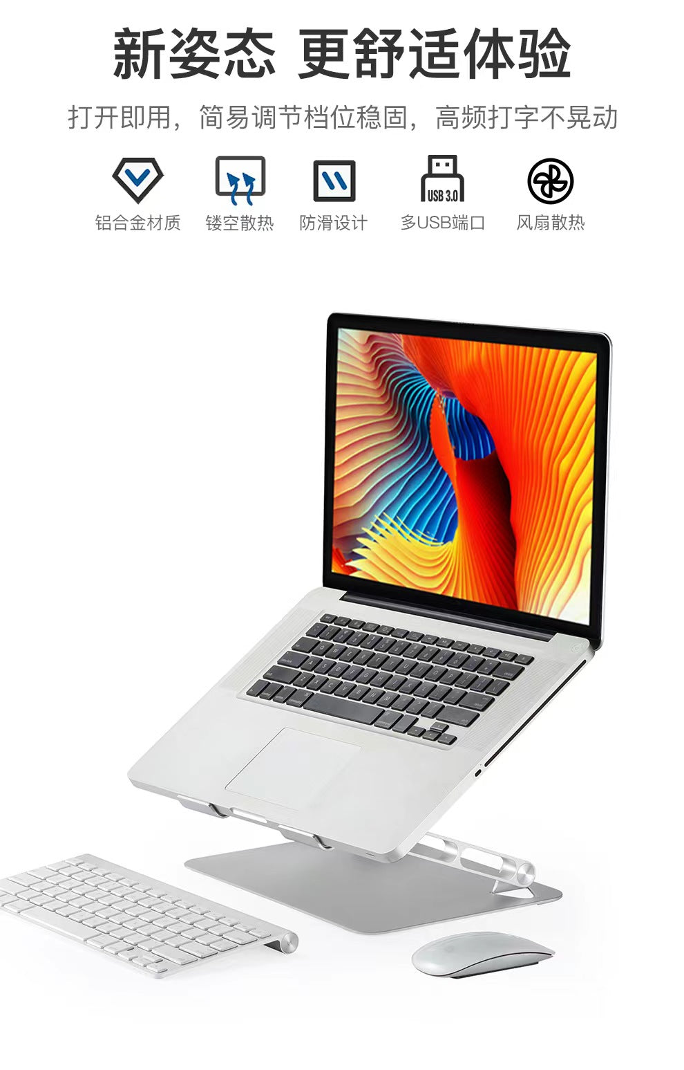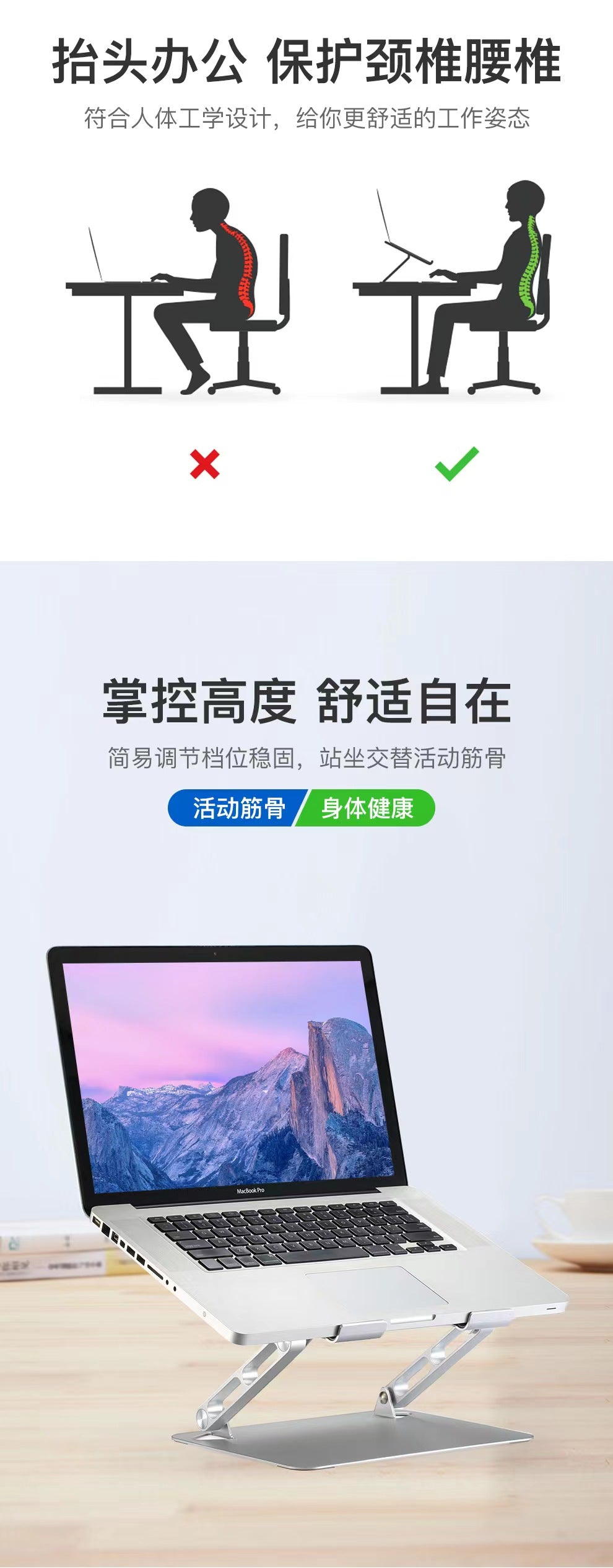 1. Nombre del producto: Soporte elevador para computadora portátil plegable, portátil, ajustable en múltiples ángulos y de altura ergonómica