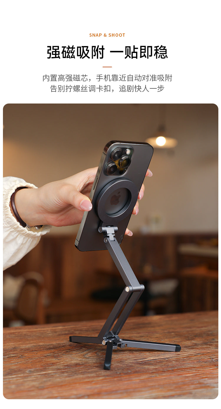 1.Product Name: iDock 2025 Portable Travel Magnetic Folding Phone Stand with Tripod Desktop Phone Holder with Tripod
