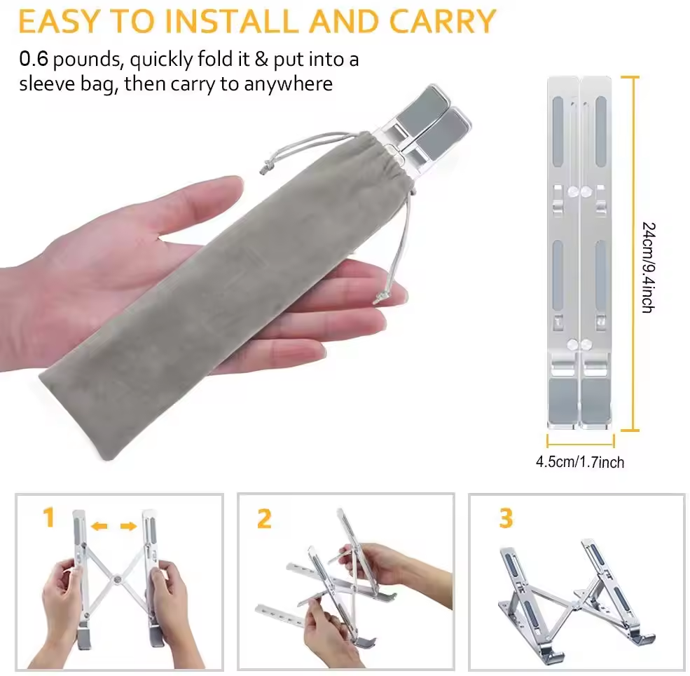 1. Nombre del producto: iDock Soporte ergonómico de altura ajustable de aluminio plegable portátil para computadora de escritorio