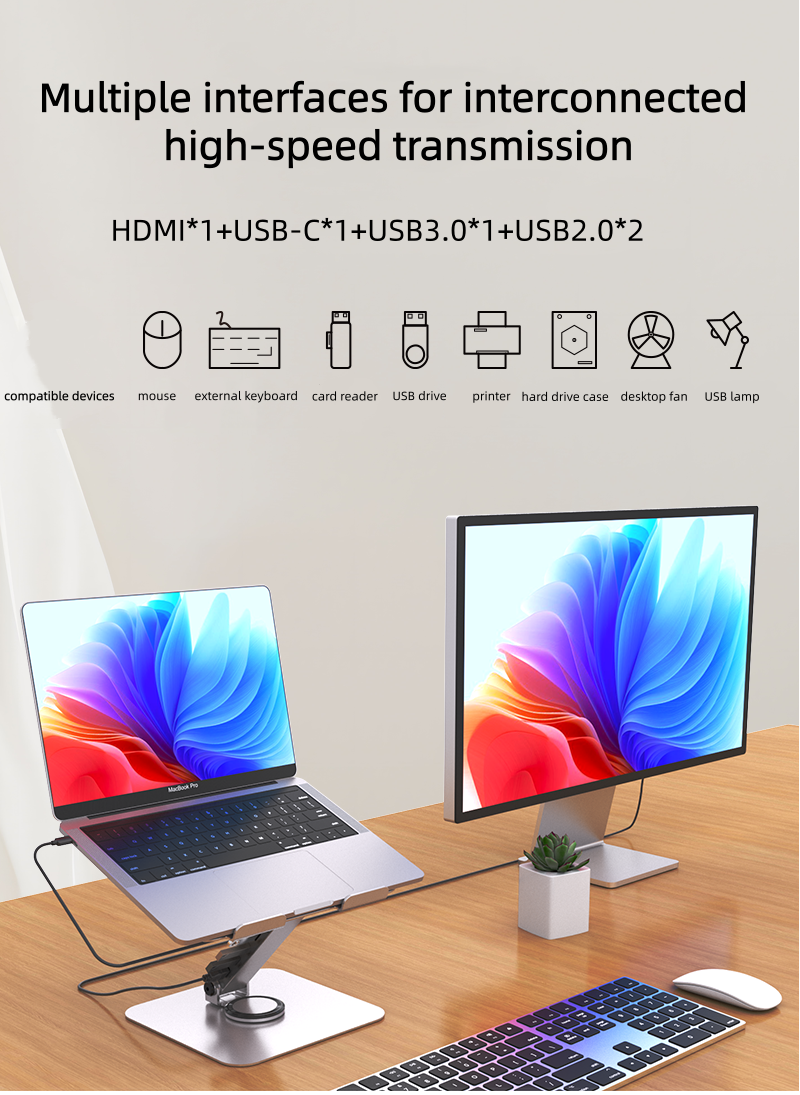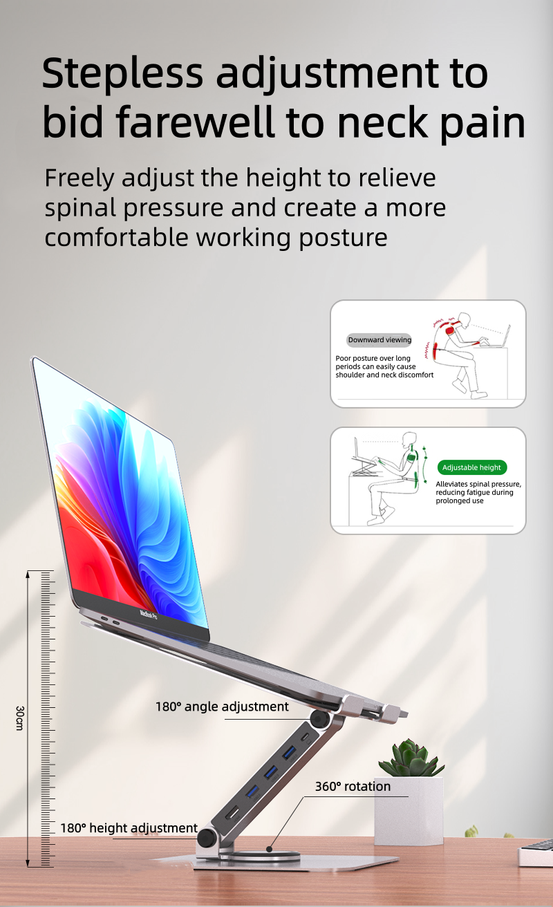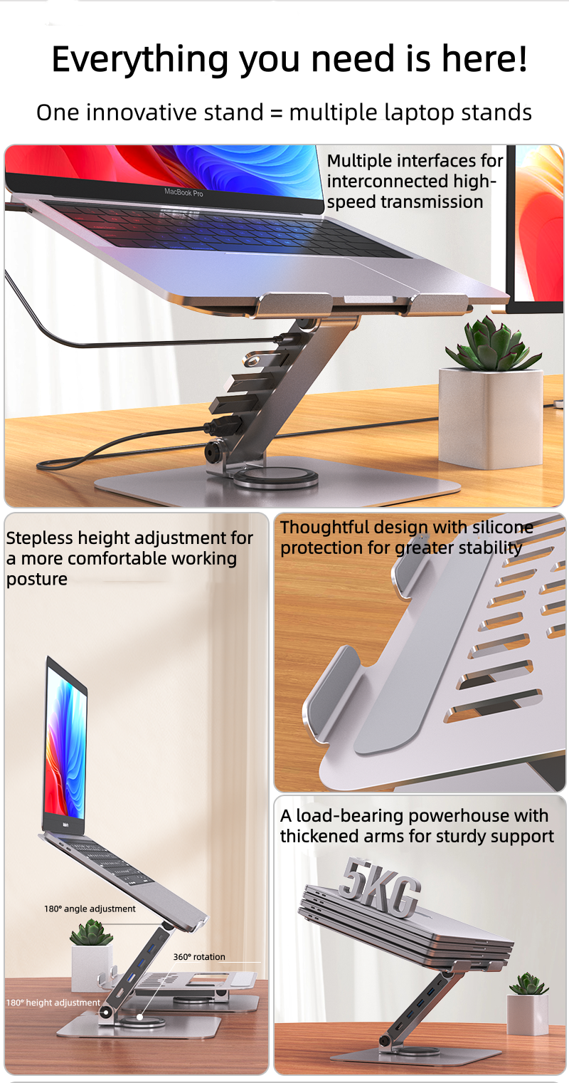 1.Product Name: iDock Ergonomic Portable Folding Adjustable 360° Rotation Notebook Holder Laptop Stand with Docking Station