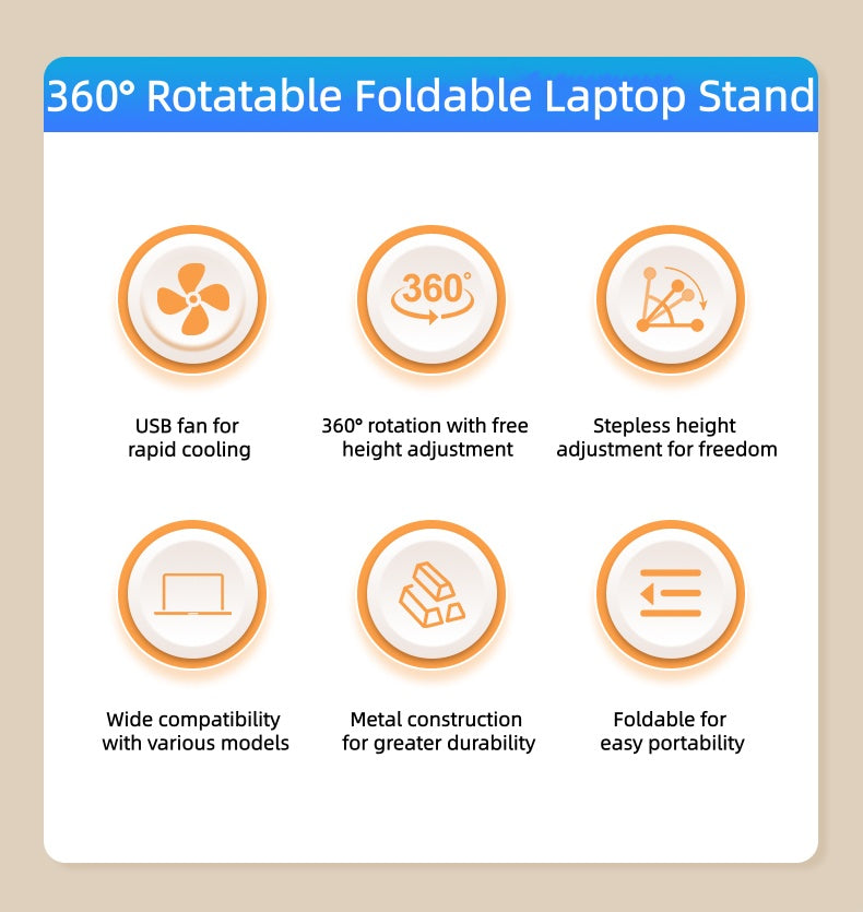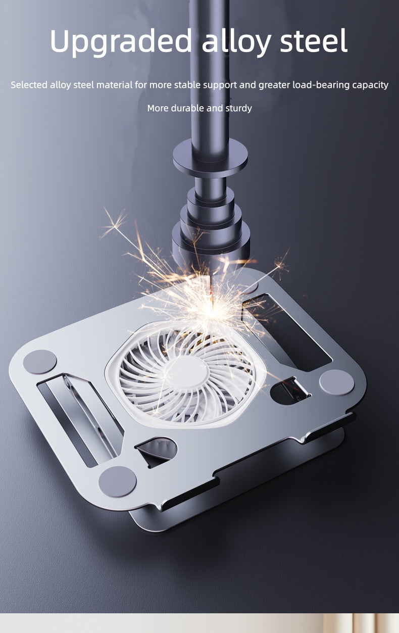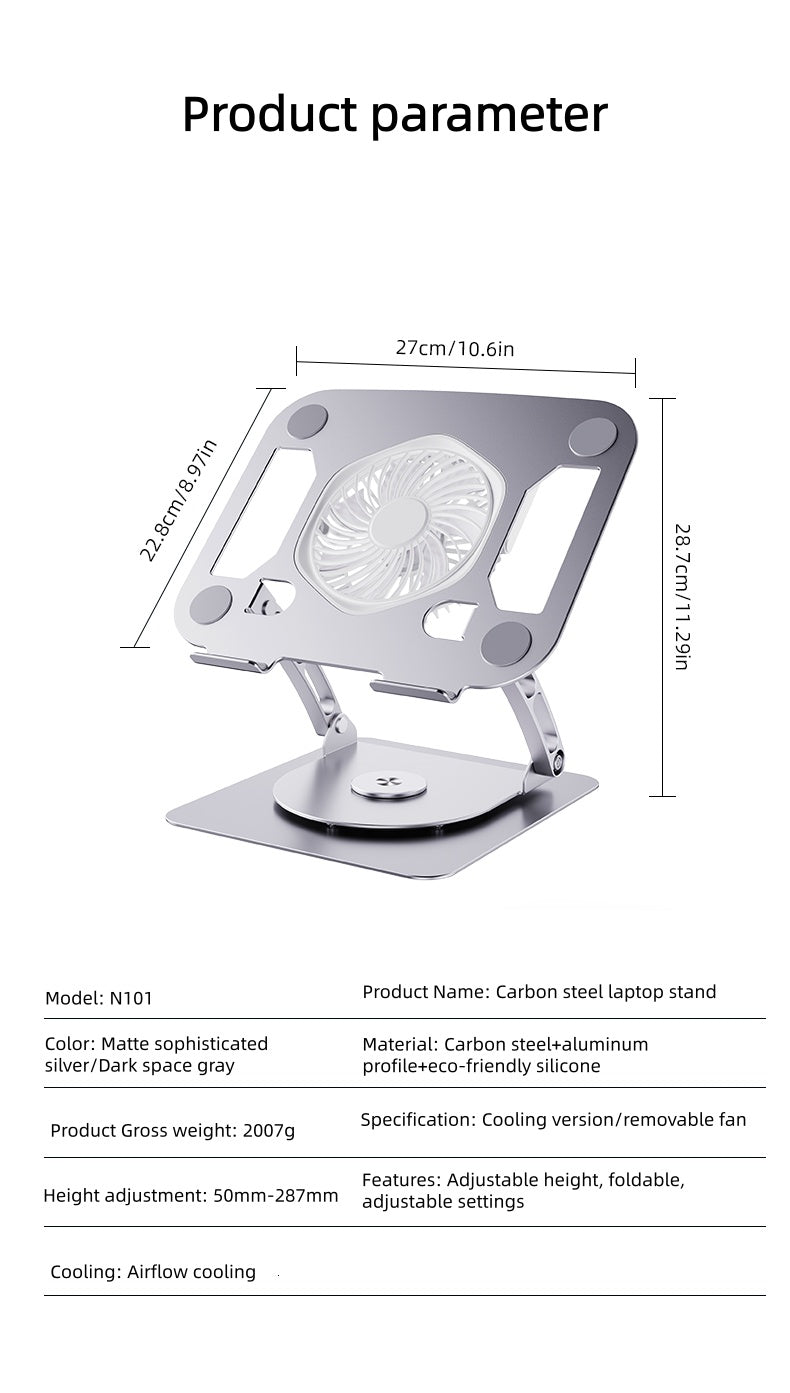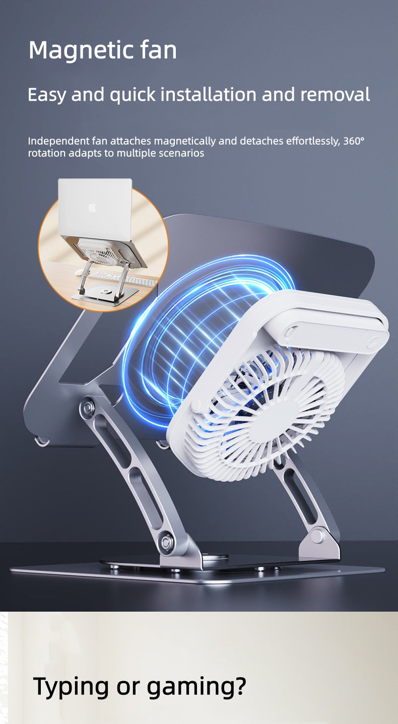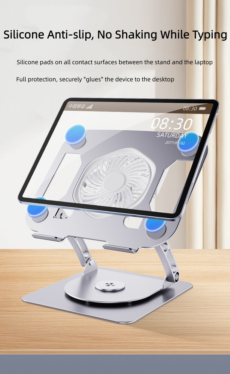 1.Product Name: iDock Portable Folding Ergonomic Carbon Steel Laptop Cooling Stand 360° Rotation Laptop Holder with Detachable fan