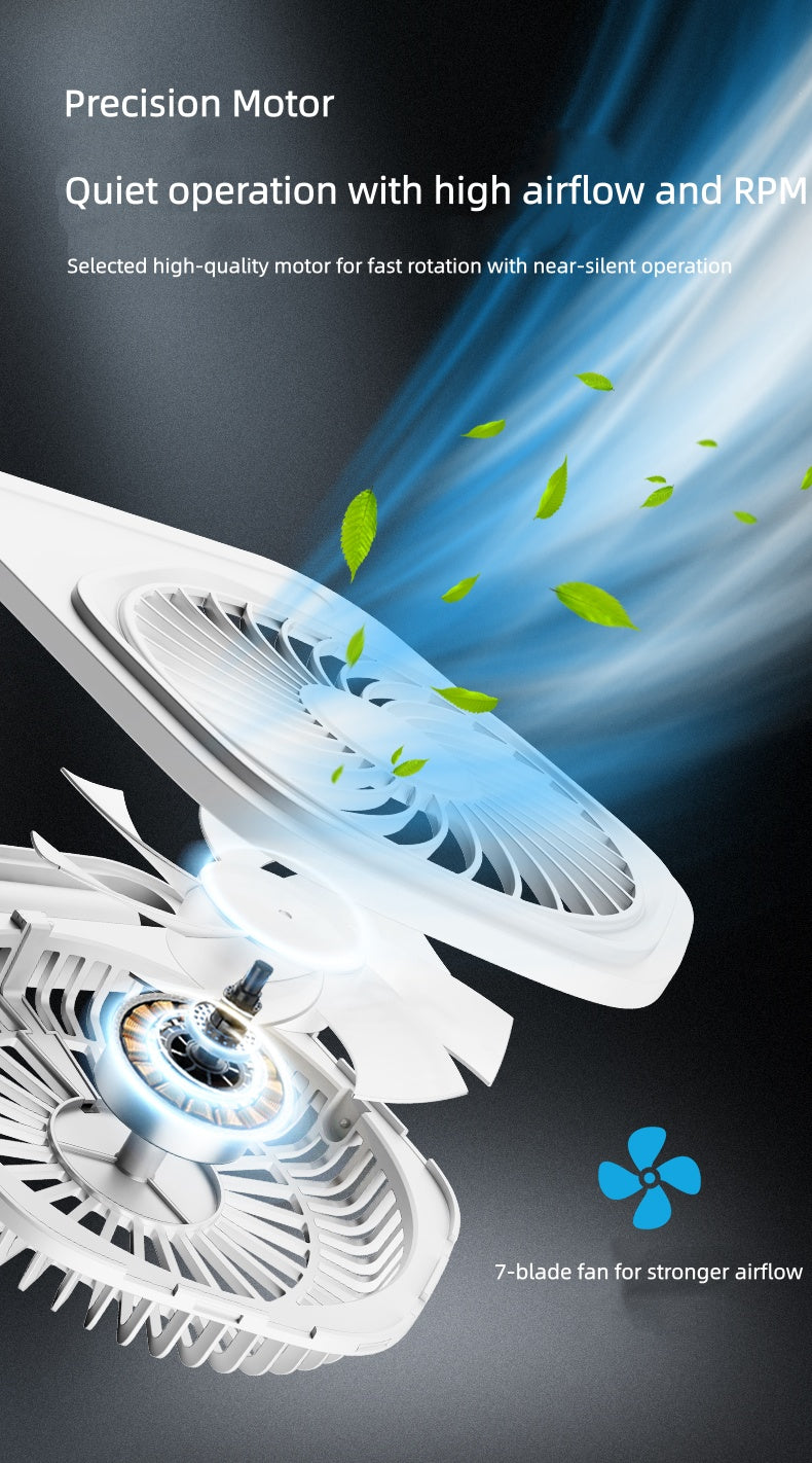 10.Detachable fan; the magnetic fan clicks into place automatically when it gets close to the stand