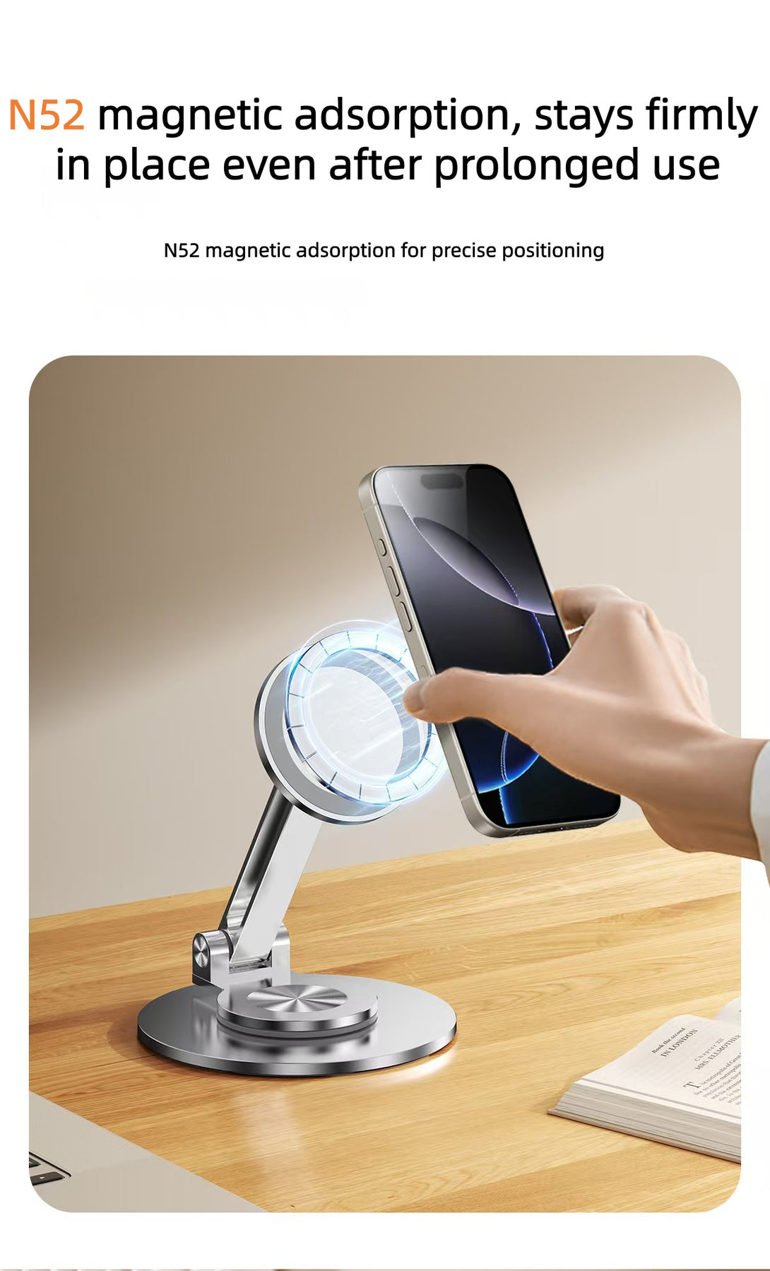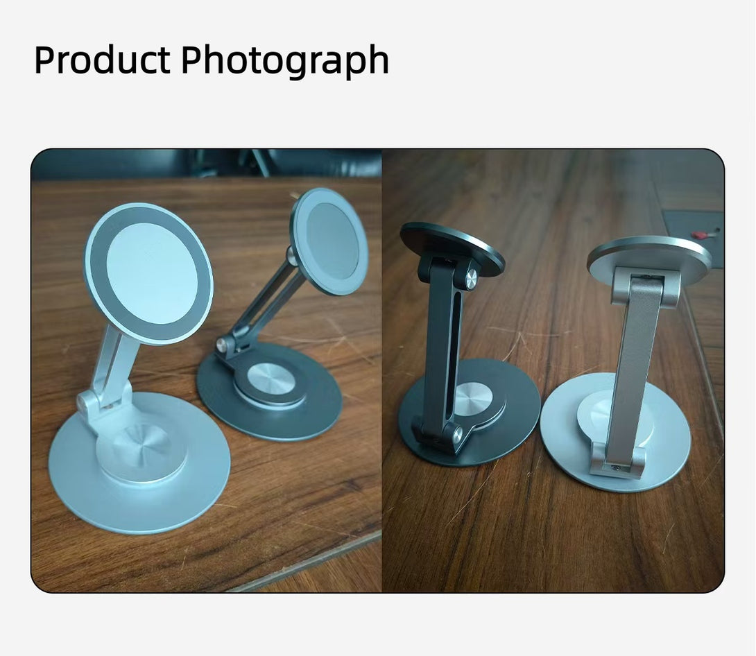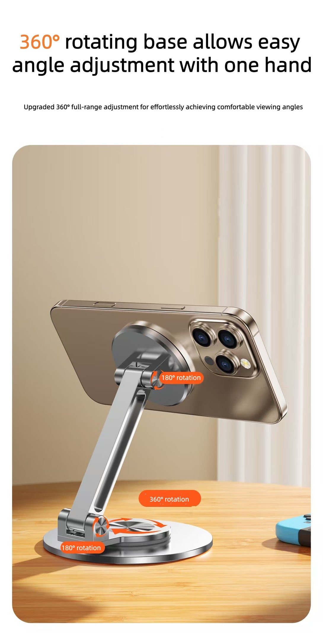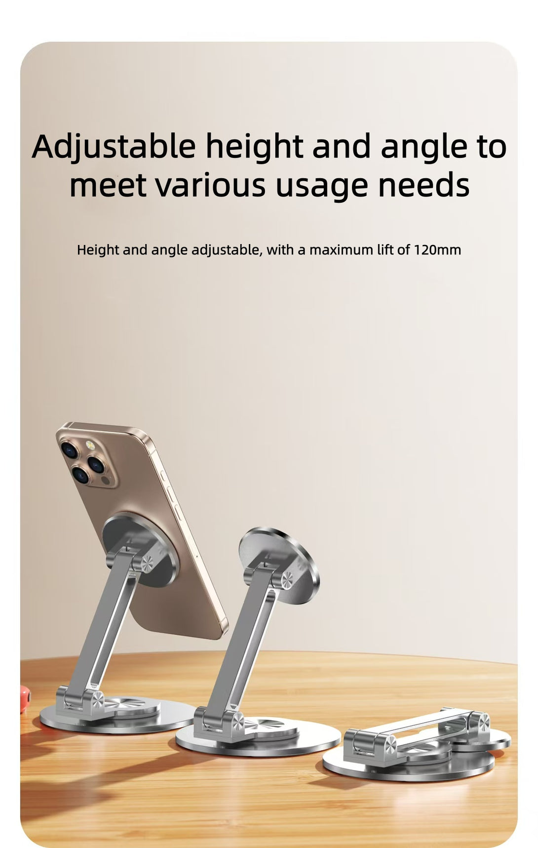 1.Product Name: iDock Portable Folding 360° Rotation Adjustable Height Aluminum Alloy Magnetic Phone Holder All Metal Folding Tablet Stand