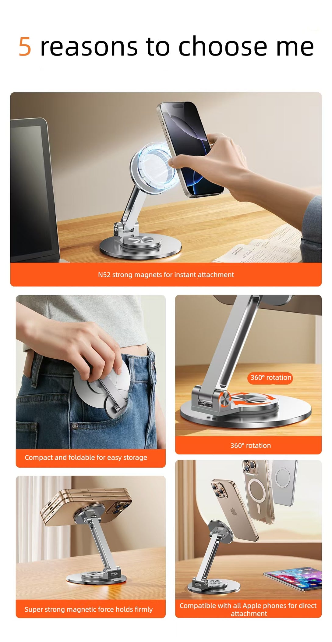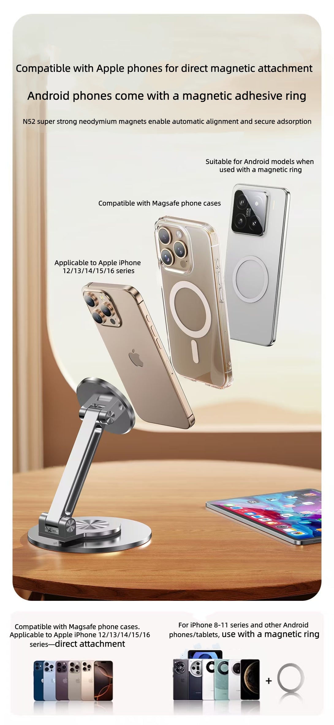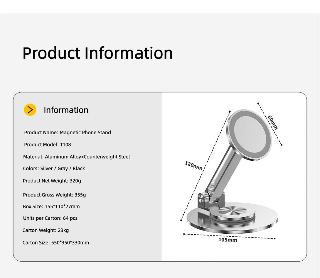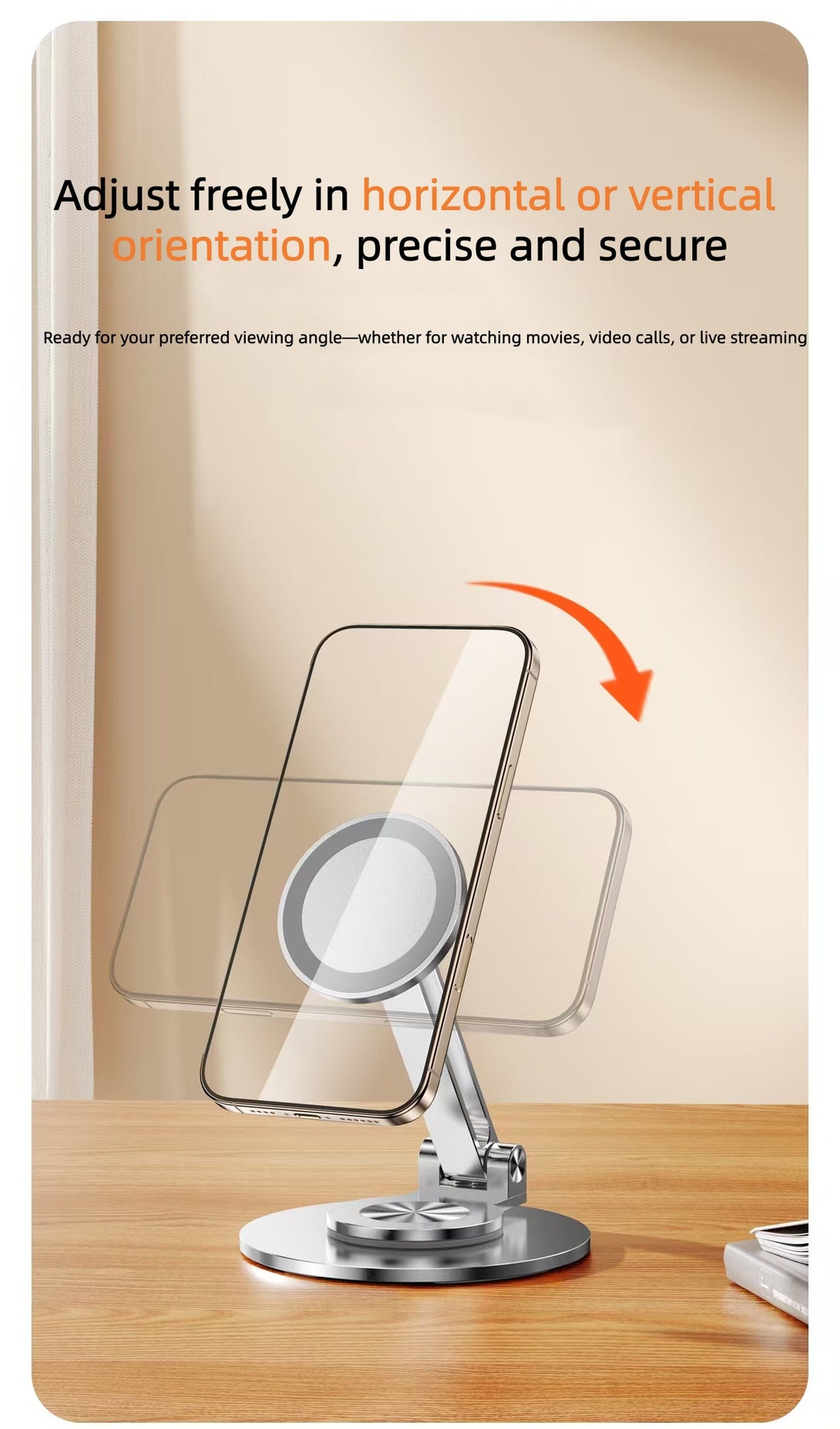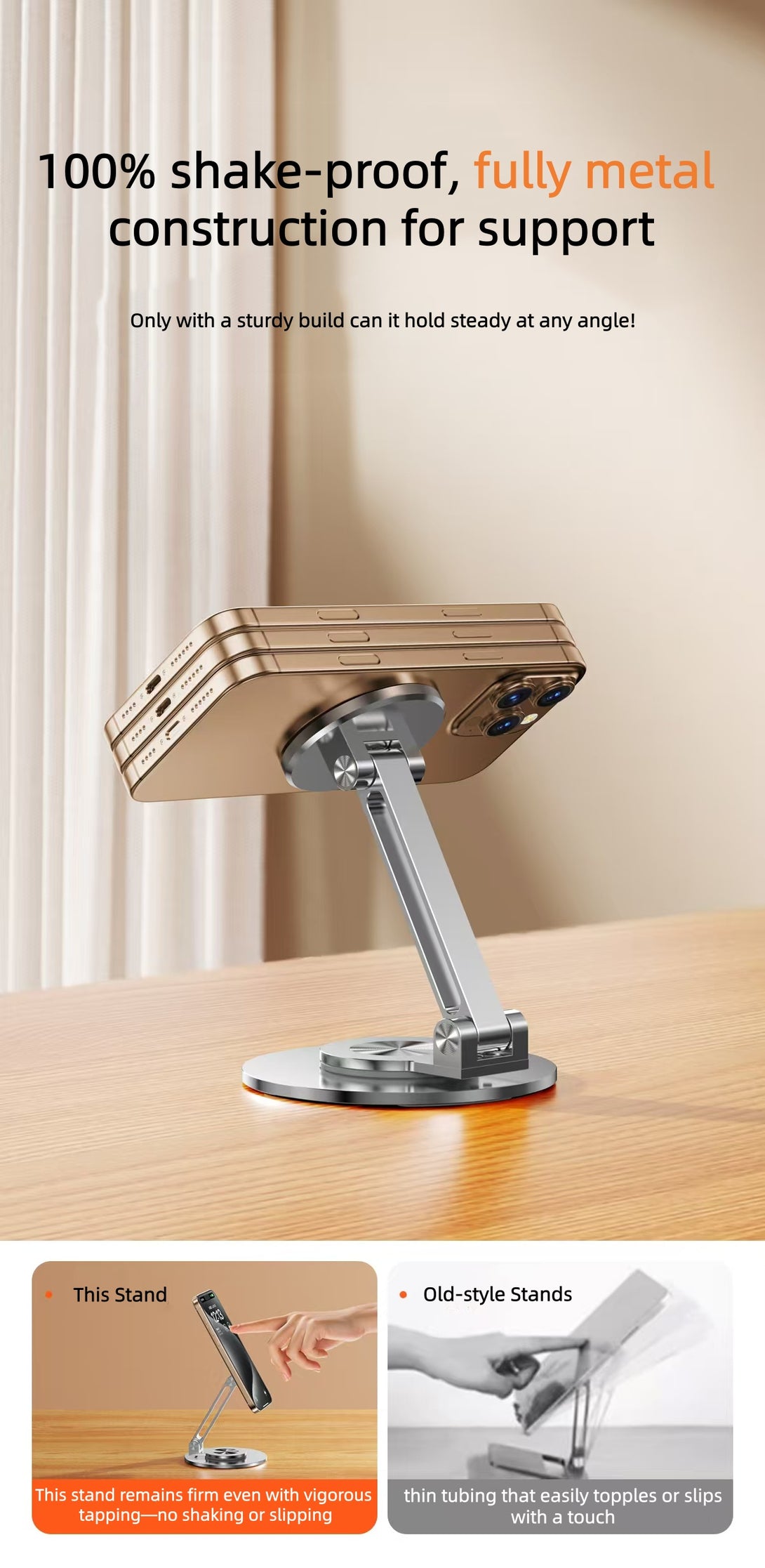 1.Product Name: iDock Portable Folding 360° Rotation Adjustable Height Aluminum Alloy Magnetic Phone Holder All Metal Folding Tablet Stand