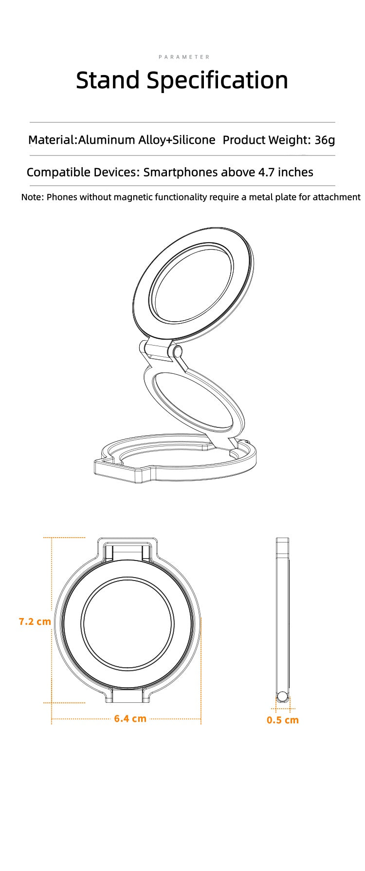 1.Product Name: iDock Portable Folding Adjustable Magnetic Phone Stand 2-in-1 Phone Ring Stand