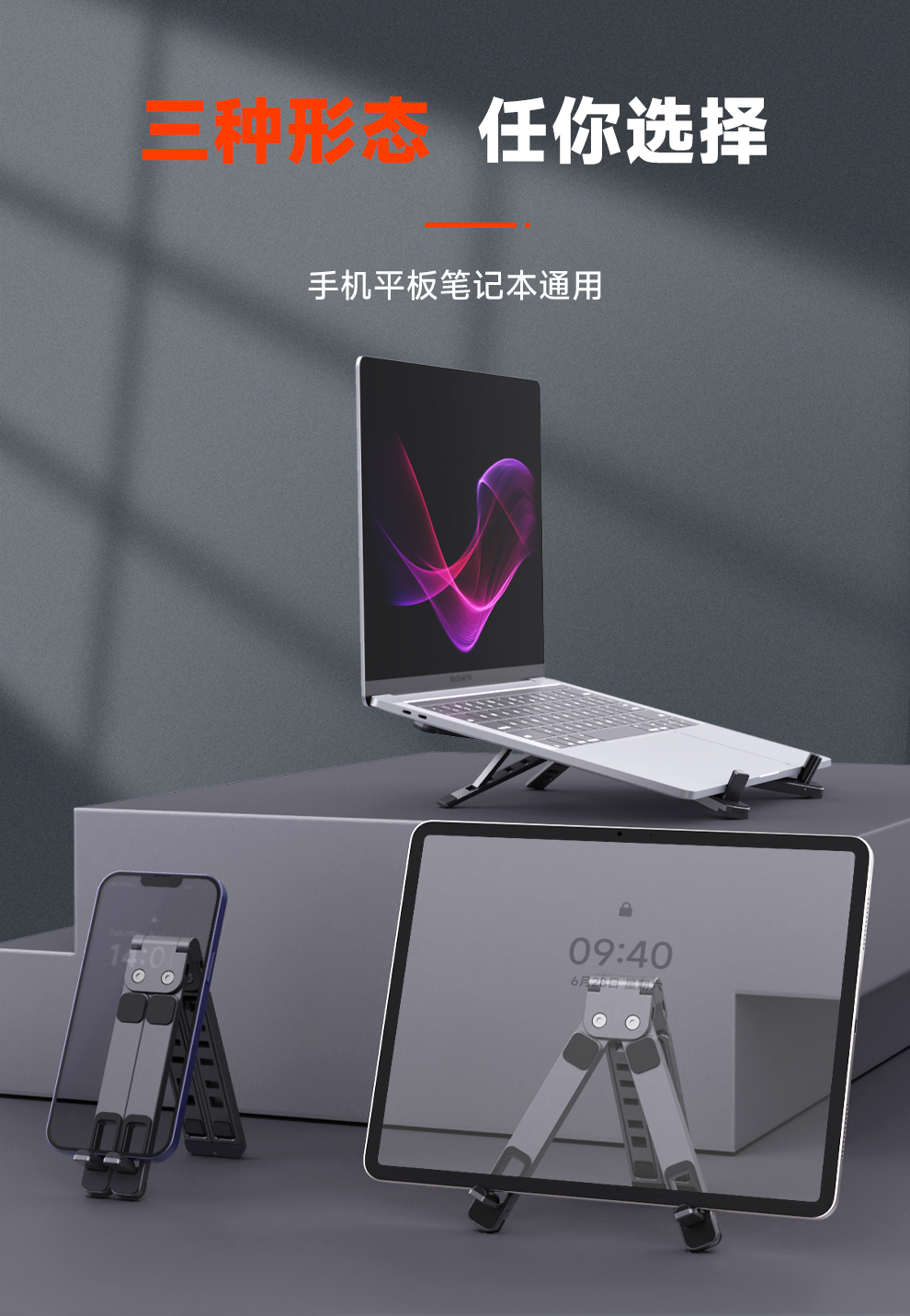 1.Product Name:iDock Portable Folding Ergonomic Adjustable Multi-functional Laptop Stand 3 in 1 Foldable Aluminum Alloy Laptop Holder