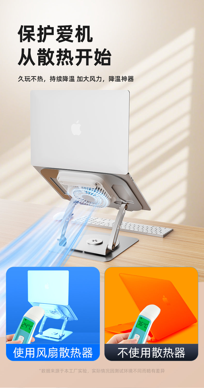 1.Product Name: iDock Portable Folding Ergonomic Carbon Steel Laptop Cooling Stand 360° Rotation Laptop Holder with Detachable fan