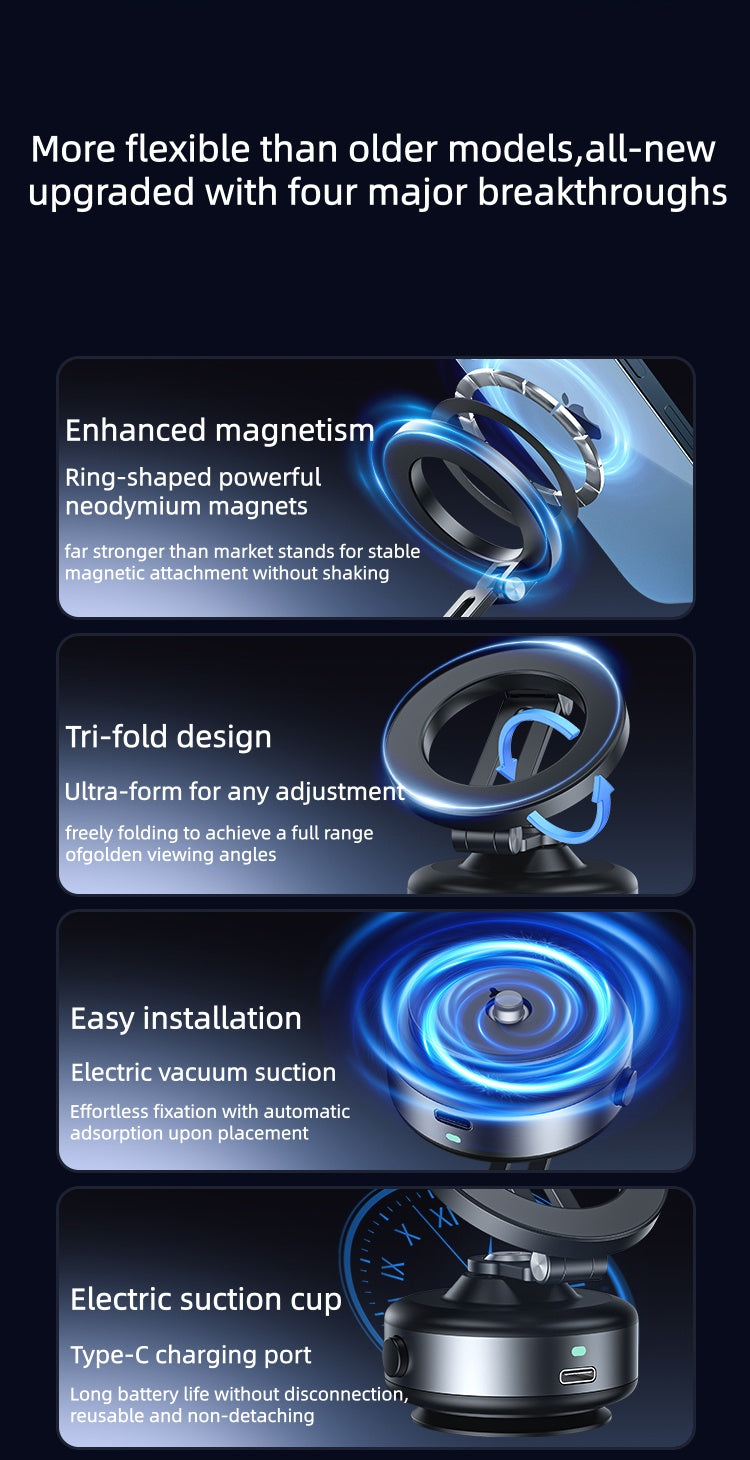 iDock Portable Three-axis Folding Electric Vacuum Magnetic Phone Stand Multi-functional Car Phone Holder