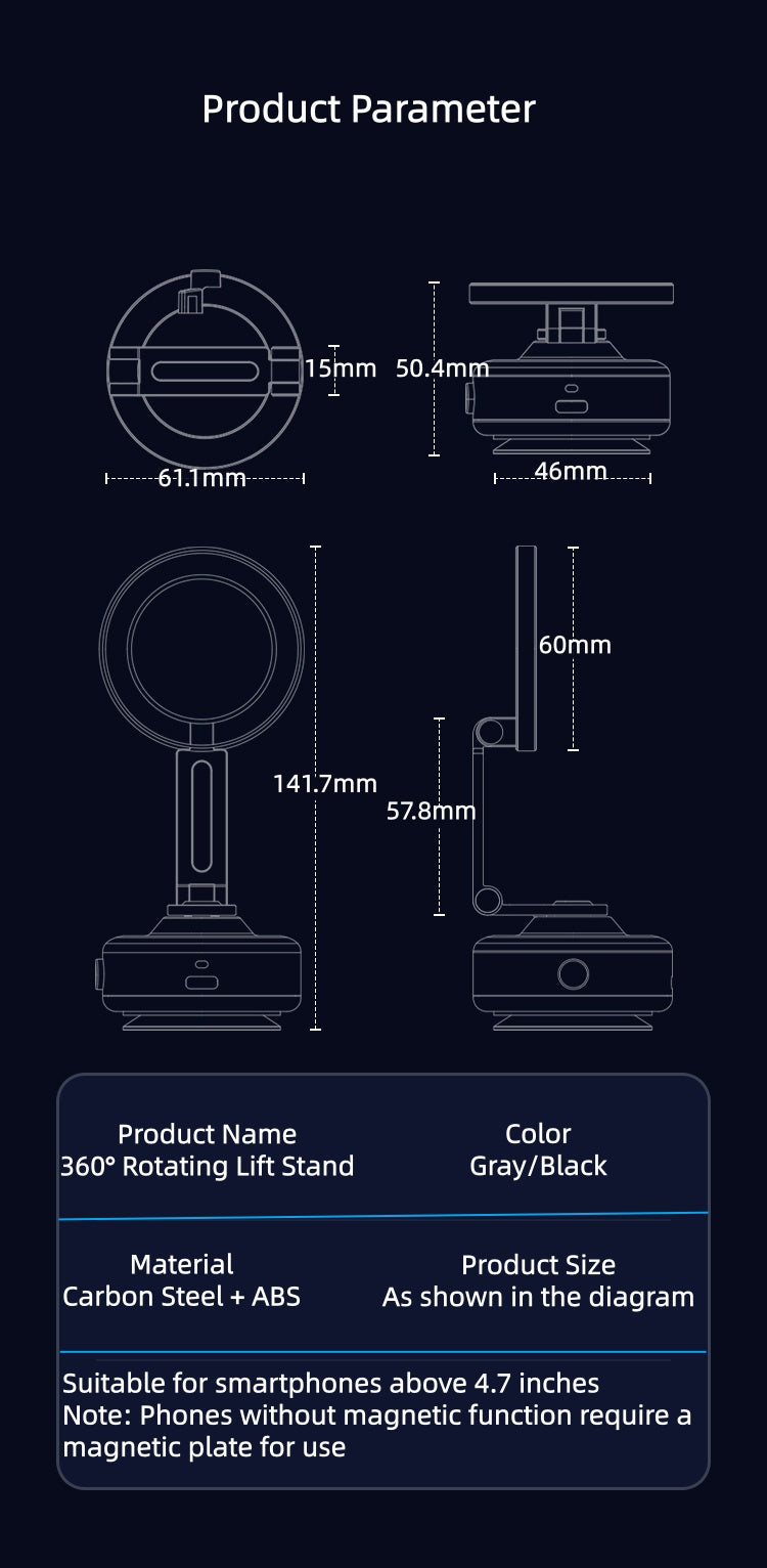 1.Product Name: iDock Portable Three-axis Folding Electric Vacuum Magnetic Phone Stand Multi-functional Car Phone Holder